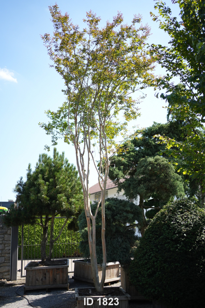 Der toskanische Flieder (Lagerstroemia) ist eine absolute Trend-Pflanze und in unserem Pflanzensortiment nicht mehr wegzudenken. Die Pflanze begeistert im Sommer mit kräftigen Blütenfarben in Weiß, Rosa und Rot. Die schönen, glatten Stämme verleihen ihr zusätzlich Eleganz und bilden einen tollen Kontrast zu den bunten Blüten. Am liebsten wächst der toskanische Flieder an einem sonnigen Standort in geschützter Lage, wo er seine volle Pracht entfalten kann – ein absolutes Highlight für jeden Garten!